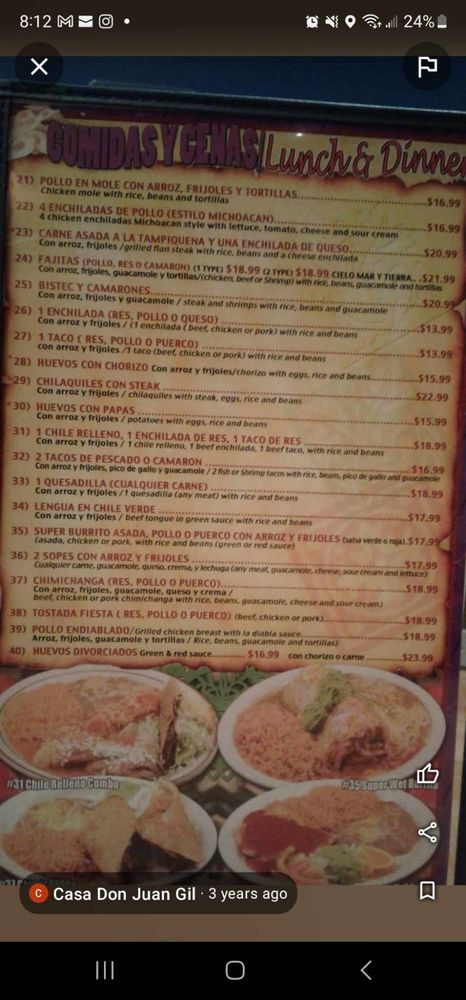 Casa Don Juan Menu (Update 2025)